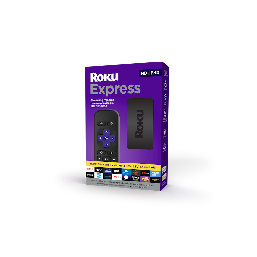 Essas facilidades Roku não são exclusivas do Roku Express. Também estão disponíveis nas Roku TVs, que são televisões fabricadas por parceiros como AOC, Philco, Semp e Britânia que funcionam com o sistema operacional Roku. O sistema operacional Roku foi desenvolvido especificamente para TV, tornando a experiência de consumir conteúdo na tela grande cada vez melhor e mais completa.