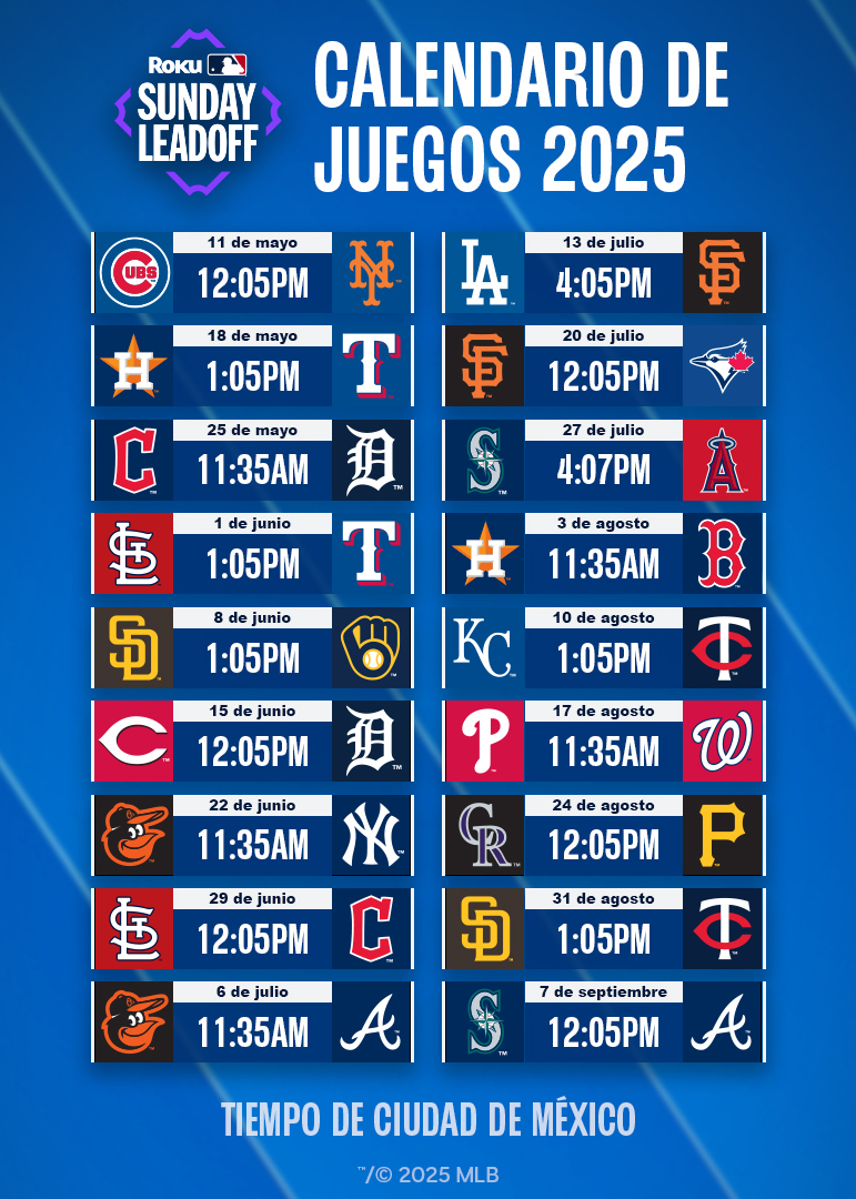 Los partidos del MLB Sunday Leadoff son fáciles de ver y no requieren suscripción. Puedes sintonizarlos desde tu dispositivo o televisor Roku sin ningún costo. Con The Roku Channel, cada domingo es de jonrón.