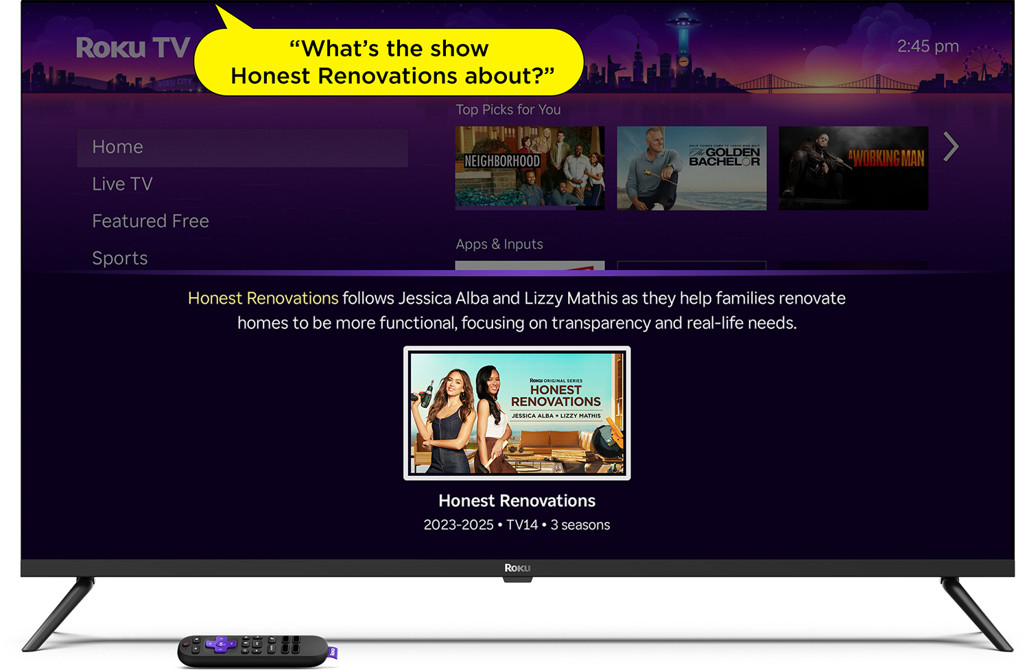 You can even ask follow-up questions, and Roku Voice will keep up with the conversation. You’ll get answers without reaching for your phone or laptop — Roku Voice responds directly on your screen, with quick launch options for relevant content.