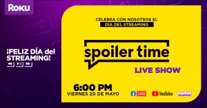 Spoiler Time (México): El sitio líder de series y televisión en México, se une a esta celebración con un show en vivo de 3 horas con invitados especiales, entrevistas, juegos y muchos regalos para todos los que están en casa, incluyendo varios dispositivos Roku. La transmisión podrá disfrutarse a través de Facebook y YouTube a partir de las 6 PM (hora de México) y estará a cargo de Rana Fonk y Diana Su.