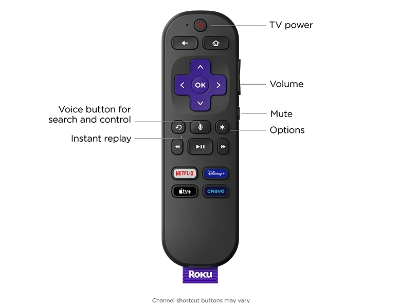 Sure does. Use the included voice remote to power up your TV, adjust the volume, and control your streaming player. That’s right—it controls both your TV and your Roku device! Using your voice, you can even search channels, play your favorites, and more. Roku Streaming Stick 4K also comes with two pre-installed AAA batteries.