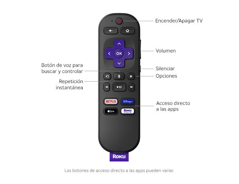 Un Roku Voice Remote te permite encender la TV, ajustar el volumen y controlar tu dispositivo Roku con un solo control remoto. Con la búsqueda y control por voz, puedes buscar rápidamente en miles de apps, reproducir contenido y administrar tu streaming. También incluye prácticos botones de acceso directo predefinidos para iniciar el streaming de apps populares con un solo toque. El control remoto viene con dos pilas AAA preinstaladas, por lo que todo lo que necesitas está incluido en la caja.